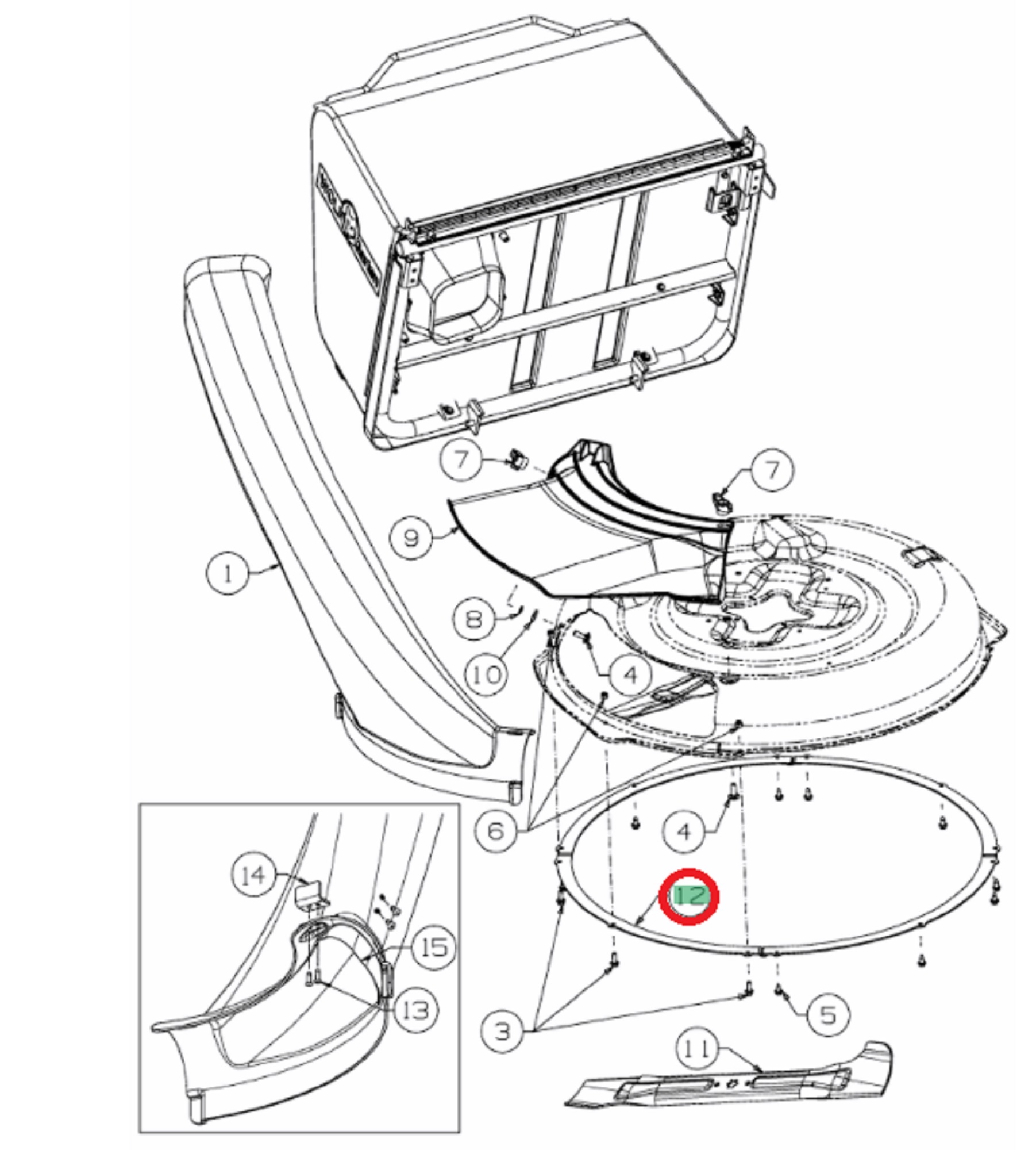 Beschermrand voor Maaidek 76 cm voor MTD, WOLF, YARDMAN, CUBCADET, WHITE Scooter Hydro, Scooter Pro, Scooter Pro Hydro, Minirider 76, CC114TA, CC114HA op Zitmaaiers - Trekkers - Tuintrekkers - Zero Turn Maaiers Kap