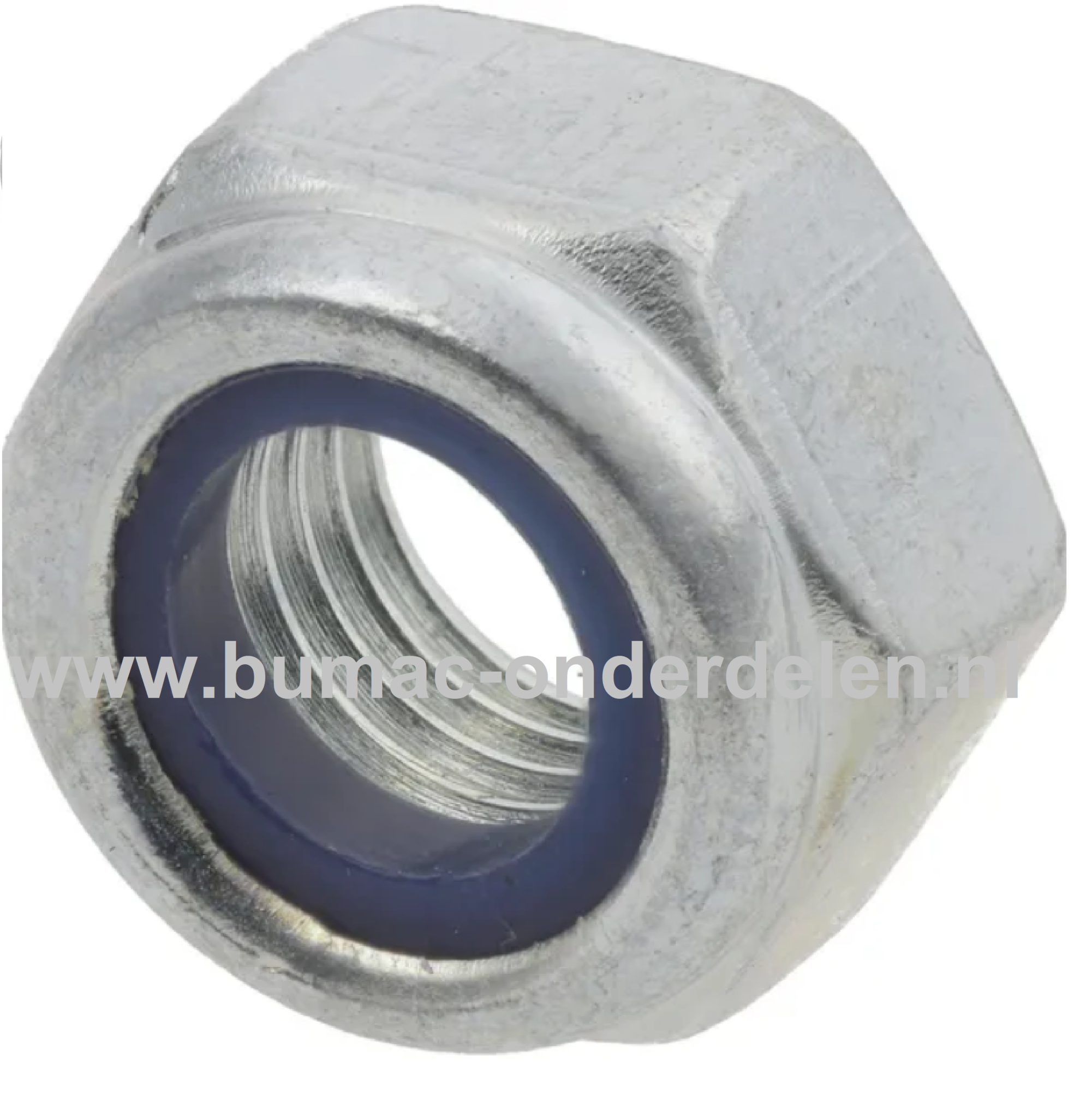 Borgmoer UNC 7/16-14 Inch Verzinkt Sleutelmaat 11/16 Inch, Hoogte 11,9 mm, Klasse 8,8 Zeskant Borgmoer, voorzien van een nylon ring om de moeren te borgen tegen loslopen/lostrillen D506NR, T515NR, GLX105RA, GLX122RHL, GLX92RALK, MF3615RD, MF4824, BL13592T