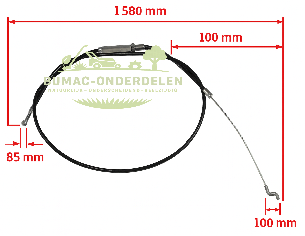 Deze kabel herstelt de directe aandrijving van de grasmaaier. Ideaal bij een versleten, uitgerekte of gebroken aandrijfkabel.