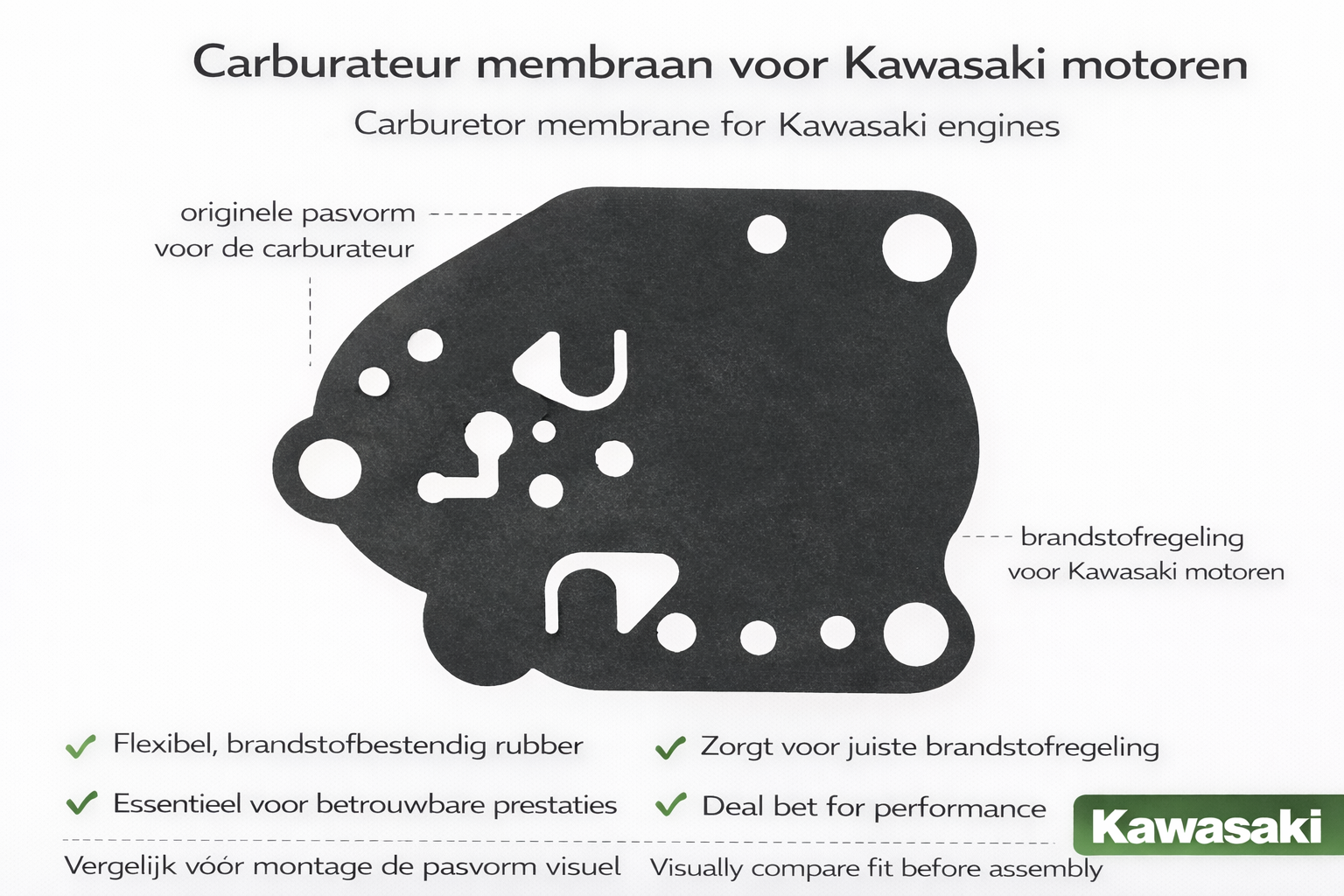 Geschikt voor Kawasaki benzinemotoren waarbij een membraan-carburateur wordt toegepast, zoals gebruikt in diverse tuin- en buitenmachines.