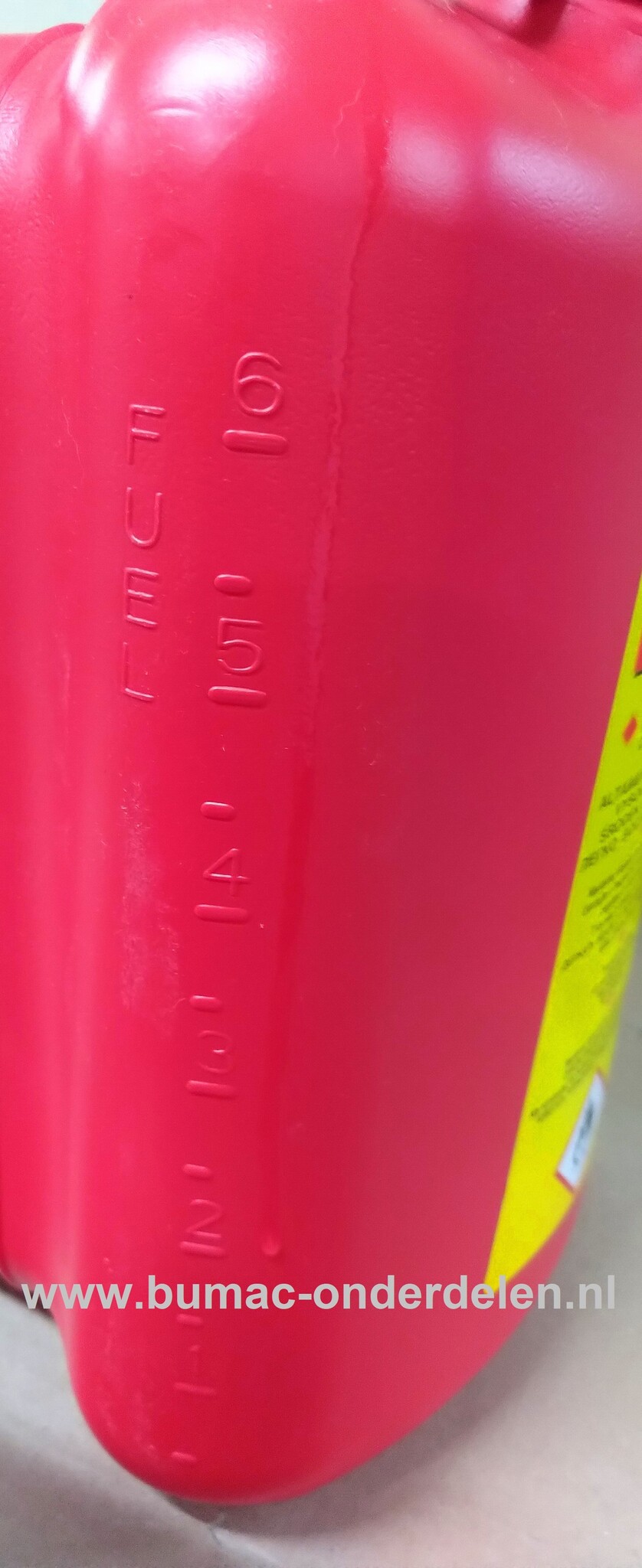 TerugHomeCombi jerrycan, Inclusief een afsluitbare tuit, Schaalverdeling in reliëf ingestanst. oranje, met een dubbel reservoir. De jerrycan heeft een reservoir van 6 liter voor brandstoffen en een reservoir van 3 liter voor olie. UN- gekeurd. Bij de jerrycan word