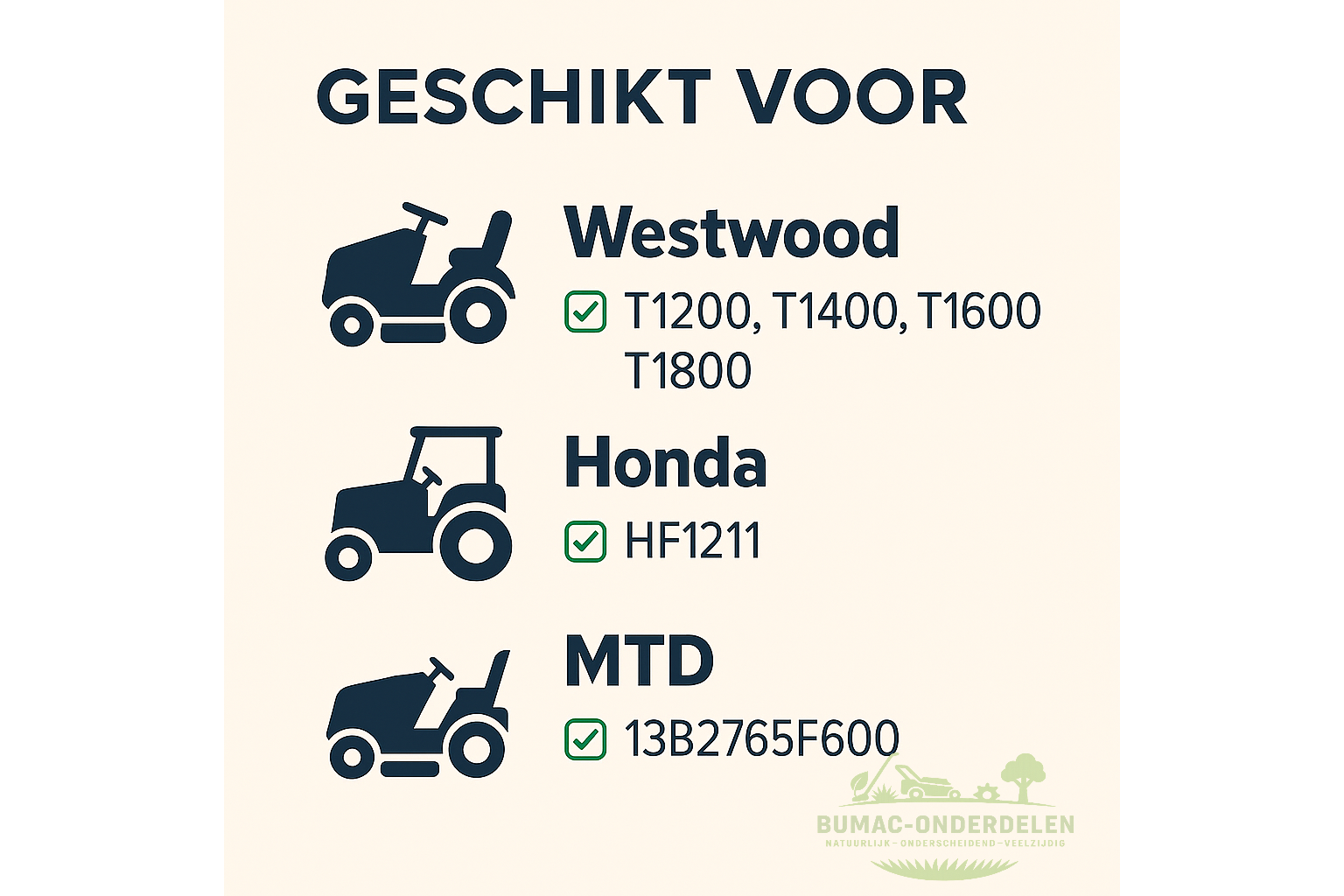 ✅ Geschikt voor Westwood modellen: T1200, T1400, T1600, T1800, T2000, S1300, S1600