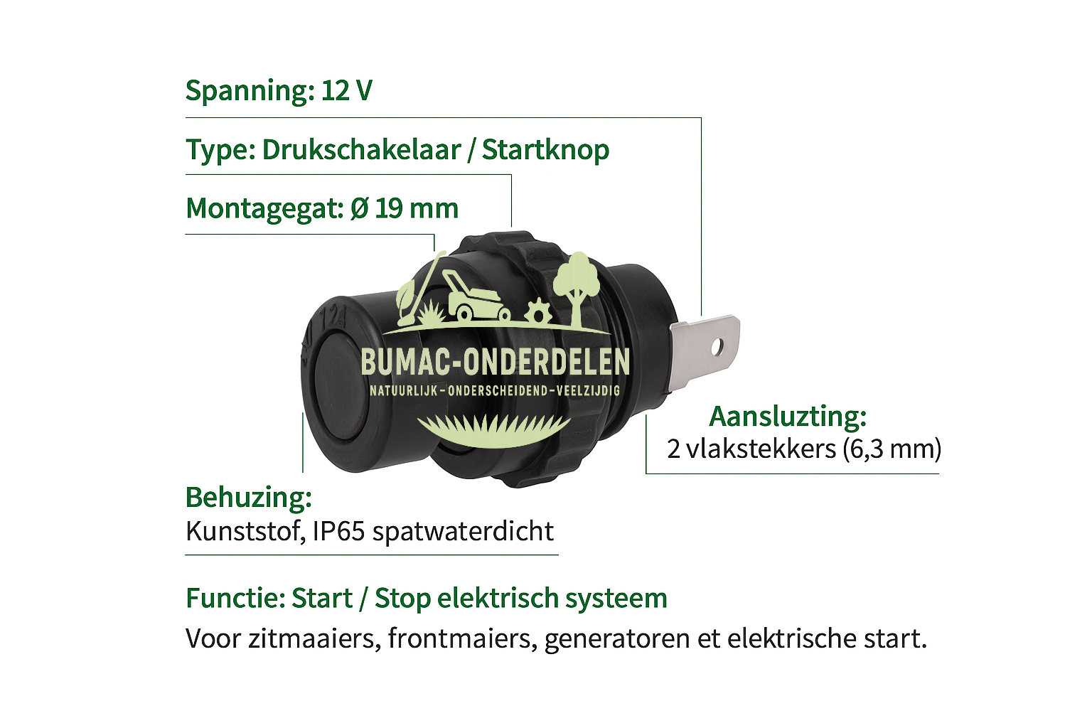 Drukschakelaar 12 V Universeel voor Grasmaaiers, Zitmaaiers, Frontmaaiers, Generatoren, Waterpompen en Kleine Motoren met Elektrische Start, kunststof uitvoering met rubber afdichting, onderdeel