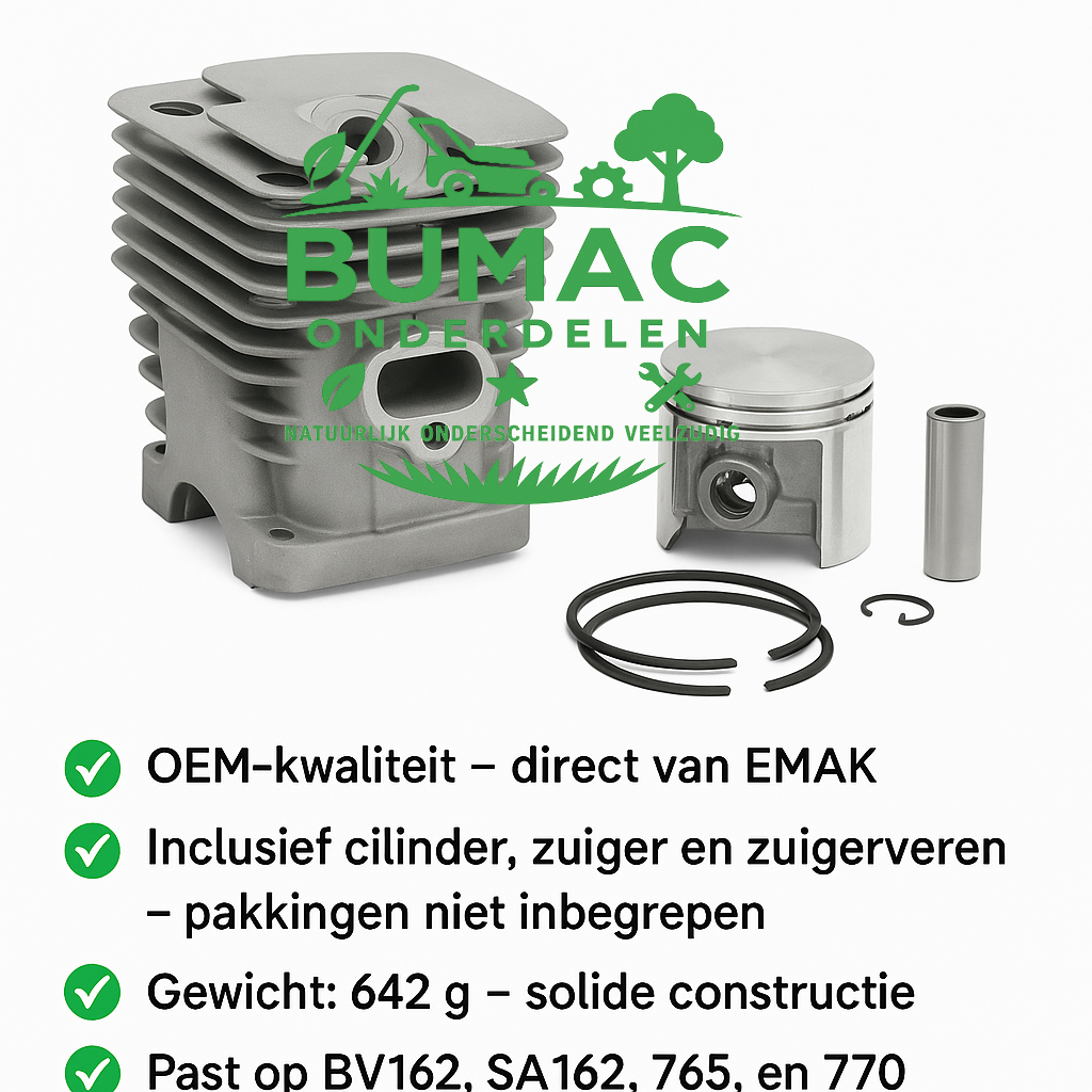 EMAK cilinder + zuiger set voor Oleo-Mac BV162, BV163, Efco SA162, SA2062, bosmaaiers en andere tuinmachines met EMAK motorblok 56522024