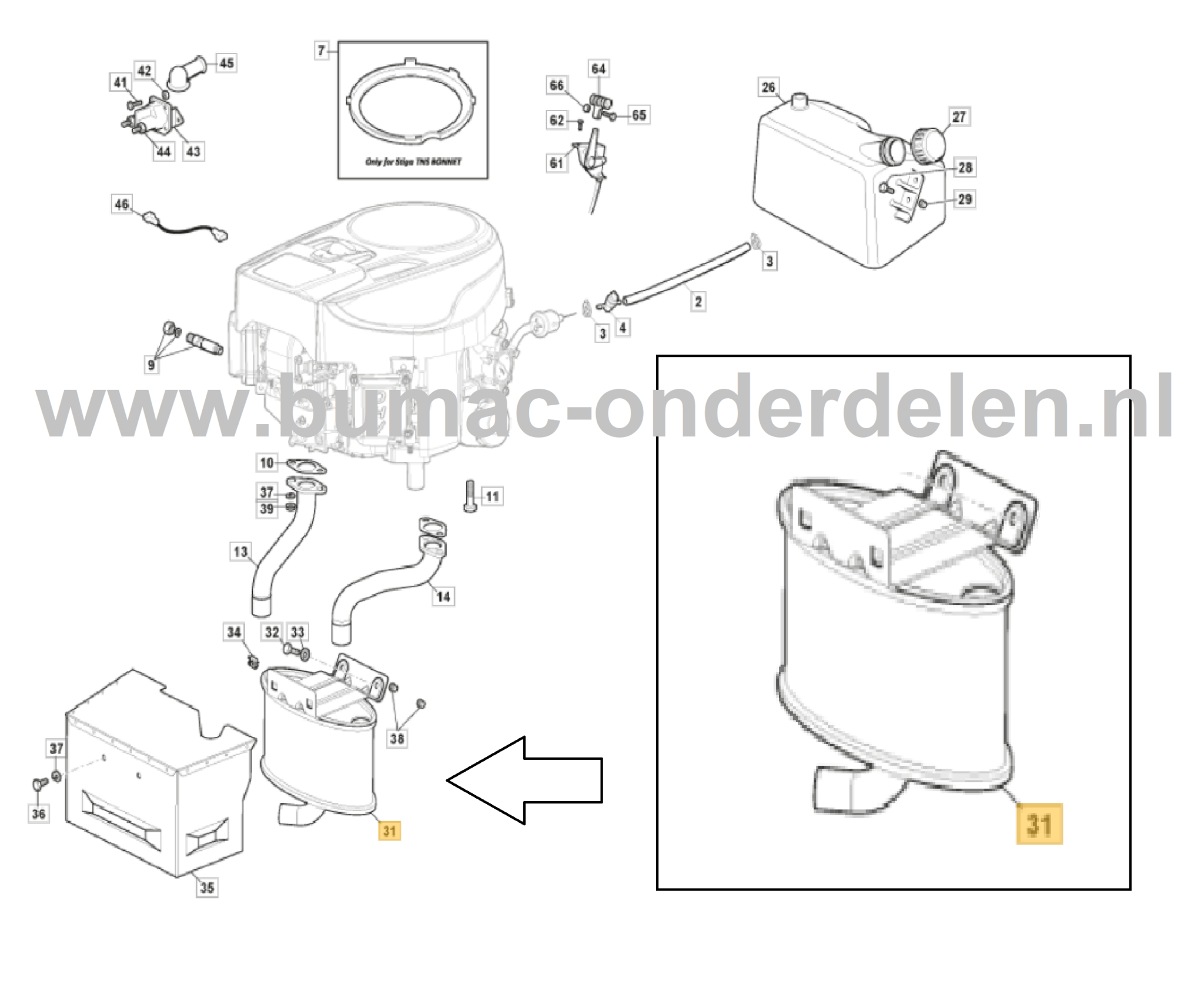 Uitlaat voor Castelgarden, Stiga, Alpina, Mountfield - Grasmaaiers - Zitmaaiers - Tuintrekkers
