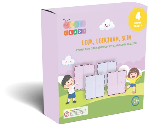 De Gladi Tiles uitbreidingsset 4 grote tegels 2×2 is speciaal ontwikkeld voor kinderen die nóg groter willen bouwen. Deze stevige onderdelen klikken veilig en soepel vast op alle Gladi Tiles sets, waardoor creaties stabieler, breder en hoger worden. Dankzij het grote formaat zijn deze tegels ideaal voor vloertegels, wanden, torens en stevige basismodules.