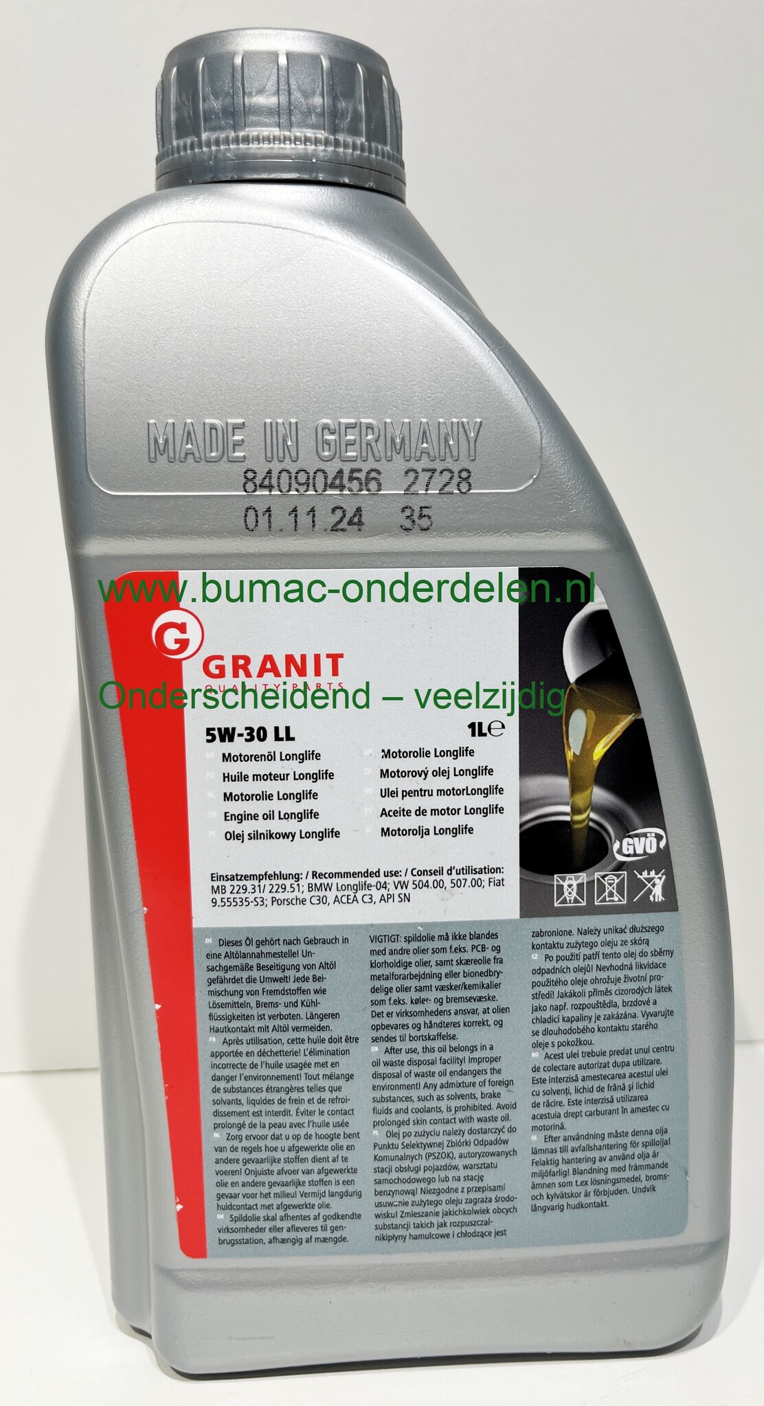 GRANIT Motorolie SAE 5W-30 Longlife – 1L Mid-SAPS HC-Synthese voor landbouwmachines van Fendt, John Deere, Deutz, Claas, Case IH, Massey Ferguson