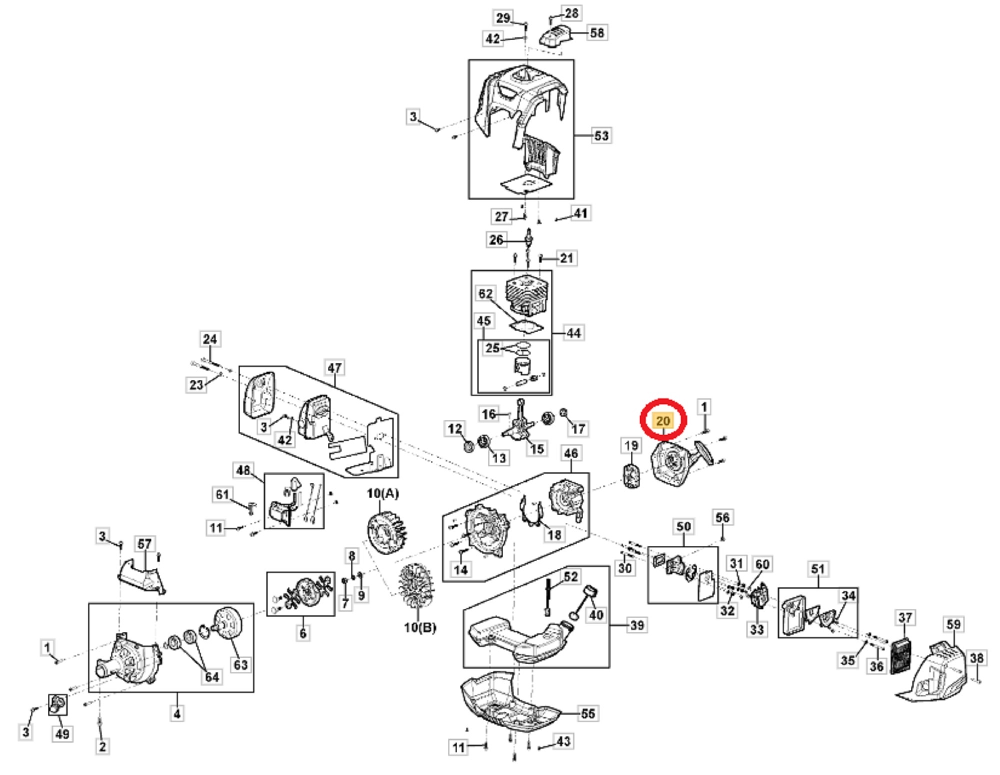 Handstarter voor STIGA, CASTELGARDEN, MOUNTFIELD, ALPINA ABR35, ABR45, ABR55, BC740, BC750, BC760, MB35, MB45, MB55, MS2700, MS3300, OM200MS, OM230MS, SBC636, SBC646, SBC656 Bosmaaiers - Trimmers - Motorzeis