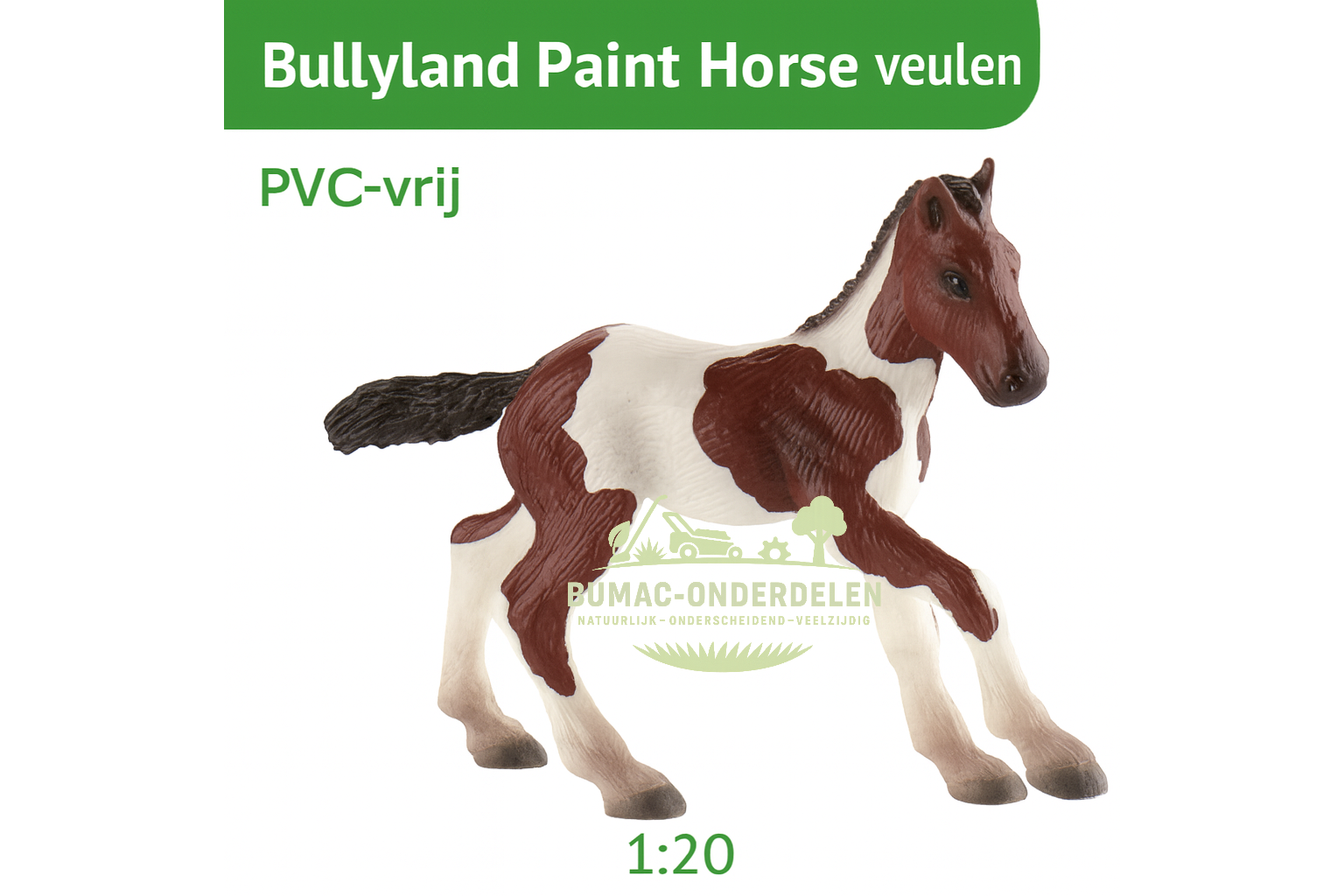 Bullyland Paint Horse veulen – realistisch handbeschilderd speelgoedpaard 1:20 – PVC-vrij figuur met tobiano-patroon en western details, onderdeel