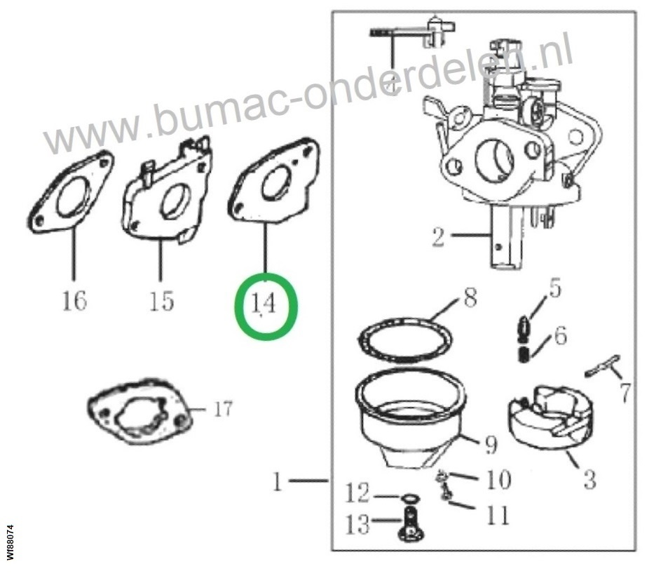 Inlaatpakking voor o.a. LONCIN G340F, G340FD, LC175FDS, LC182F Motoren op Generator, Grasmaaier, Golfbaanmachine, Kart, Tuinfrees, Trilplaat, Verticuteermachine, Waterpomp, Veegmachine, Zitmaaier e.d.