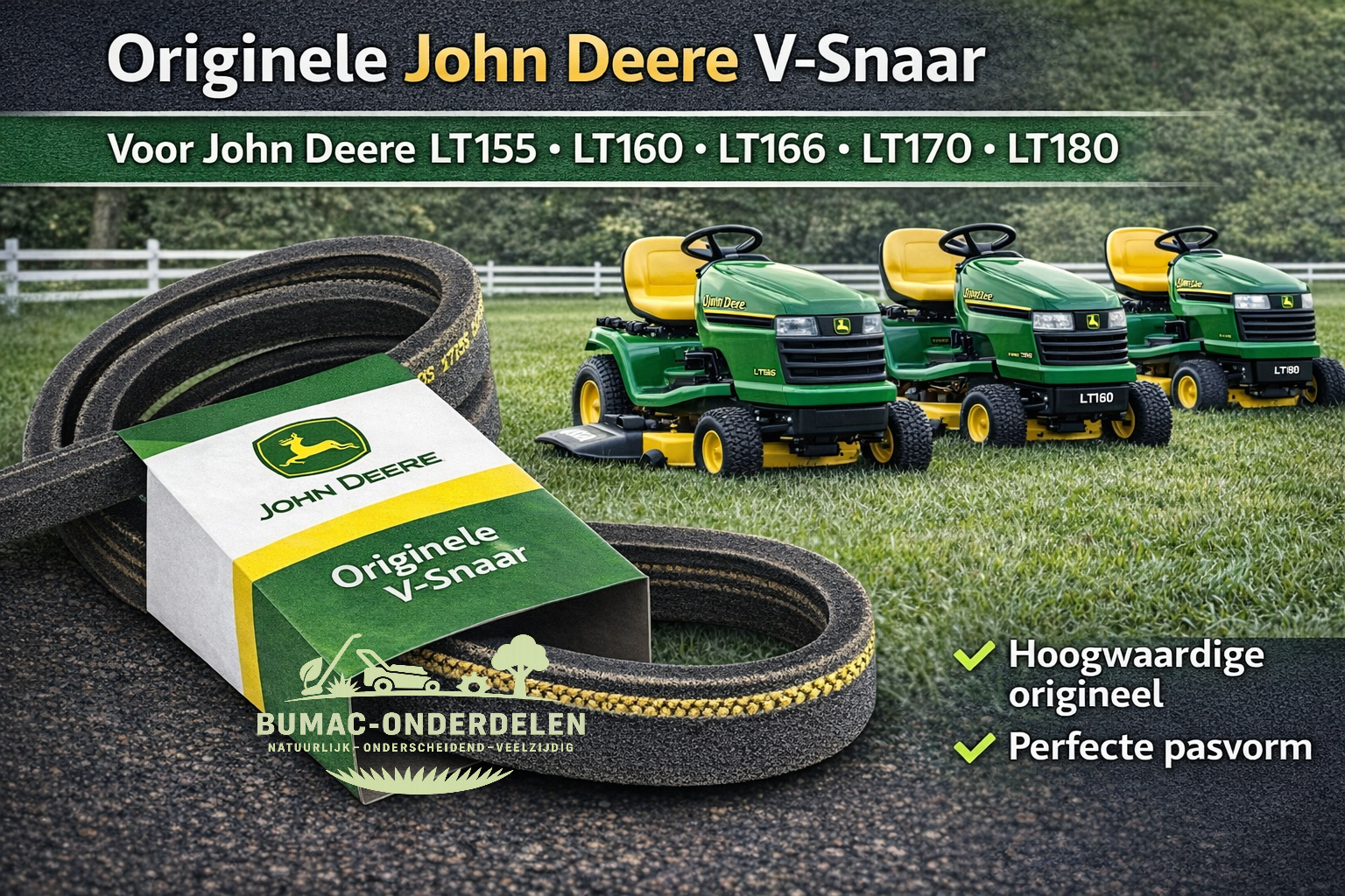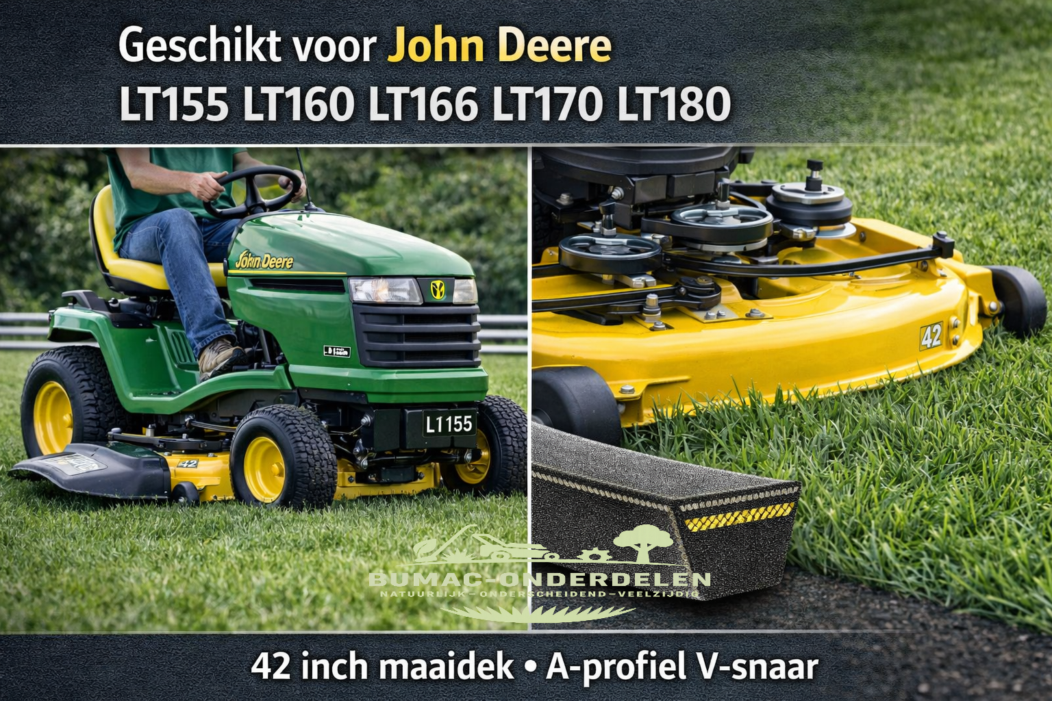 John Deere V-snaar maaiaandrijving 42 inch zitmaaier onderdeel LT155 LT160 LT166 LT170 LT180 Sabre Scotts 42 inch maaidek origineel onderdeel