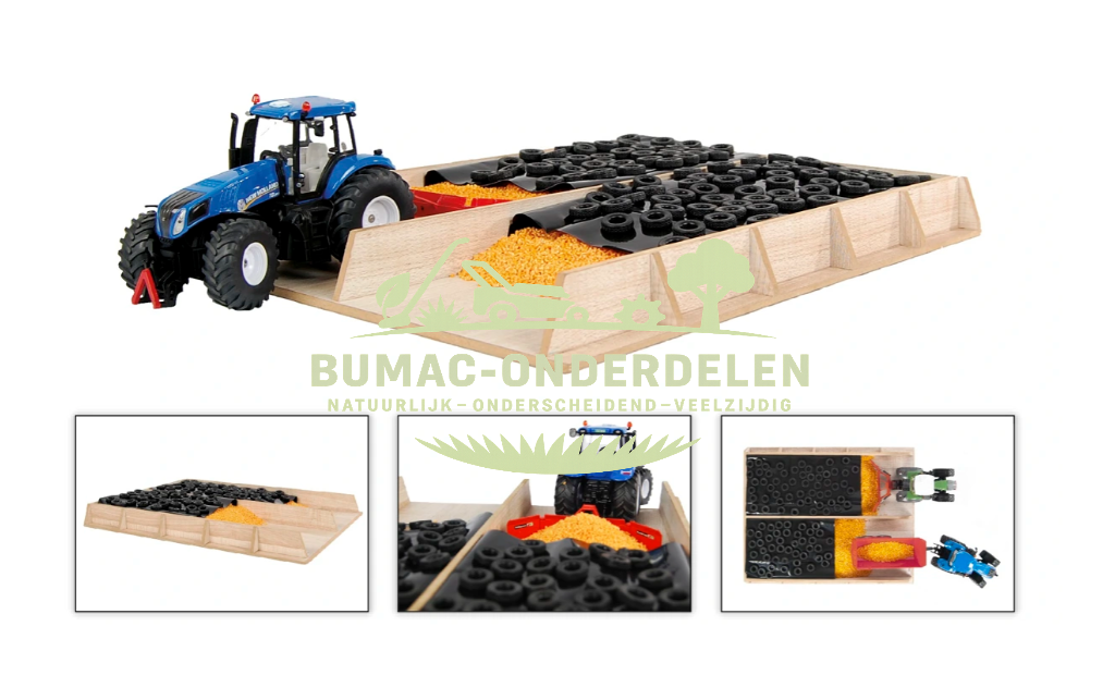 Voor het realistisch opslaan en lossen van mais of voer. Ideaal om te gebruiken met speelgoedtractoren, aanhangers of voerwagens.
