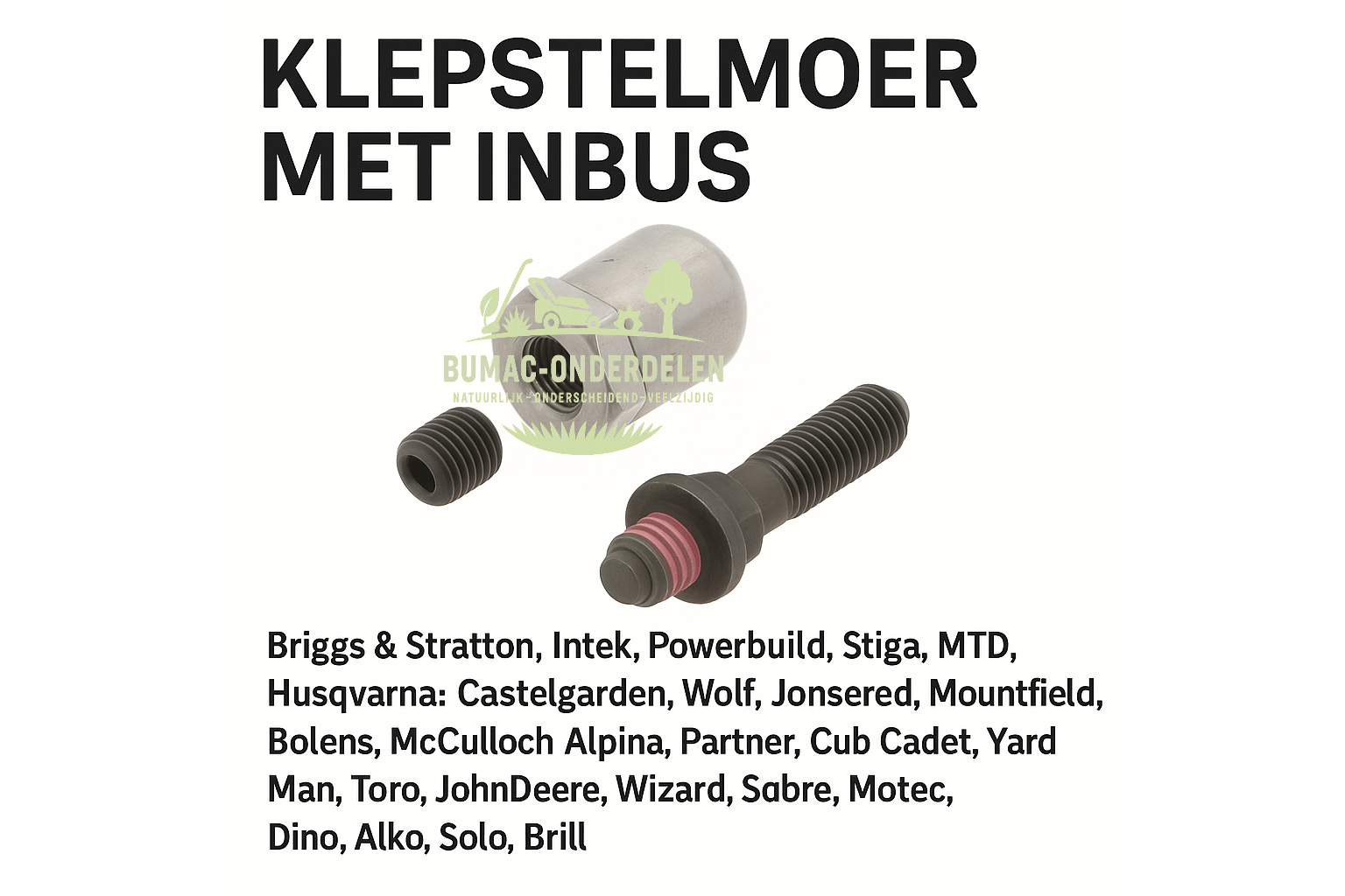 Tip: ✅ Controleer bij het vervangen van de klepstelmoer-set altijd ook de klepspeling volgens de fabrieksvoorschriften. Slijtage of verkeerde afstelling kan leiden tot vermogensverlies of startproblemen. Inspecteer tegelijk de tuimelaars, klepstoters en borgmoeren op slijtage en vervang deze indien nodig voor een optimale werking van de motor.
