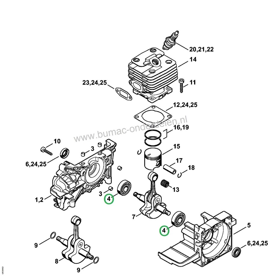 Krukaslager voor Stihl Bosmaaier, Bladblazer, Grondboor, Stokzaag, Multitool BG45, BG46, BG65, BG85, BT45, BT120C, BT121, FS120, FS200, FS250, FS300, FS350, FS450, FS480, HL75, HL70, HL75 Krukas Lager