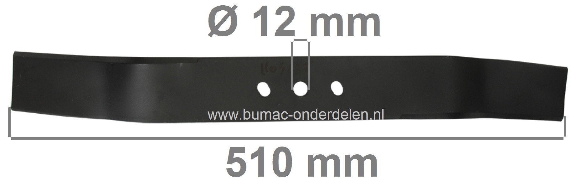 TerugHomeMaaimes 51 Cm voor Daye DYM1578 en DYM1778 Grasmaaiers, Cirkelmaaiers, Loopmaaiers, DAYE Mulchmes, Lengte 510 mm, Asgat 12 mm, Zijgaten 9,1x12,6 mm, Hart op Hart Afstand 61,6 mm, Breedte 55 mm