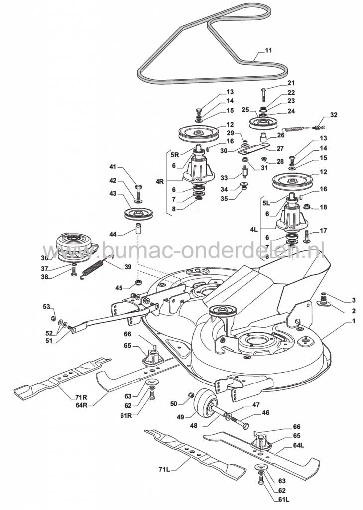 Rechter Mesas met Houder en Lagers Compleet voor STIGA - CASTELGARDEN - MOUNTFIELD - ALPINA Zitmaaiers, Frontmaaiers, Tuintrekkers