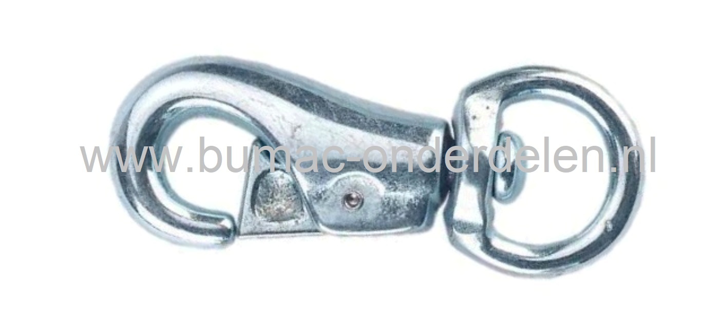 Musketonhaak met draaistuk , gegalvaniseerd, verzinkt, Musketonhaak is een haak met een schuivend gedeelte die volledig wordt afgesloten. Hondenscholen, hondenlijnen, halsbanden, textielbedrijven, Musketon