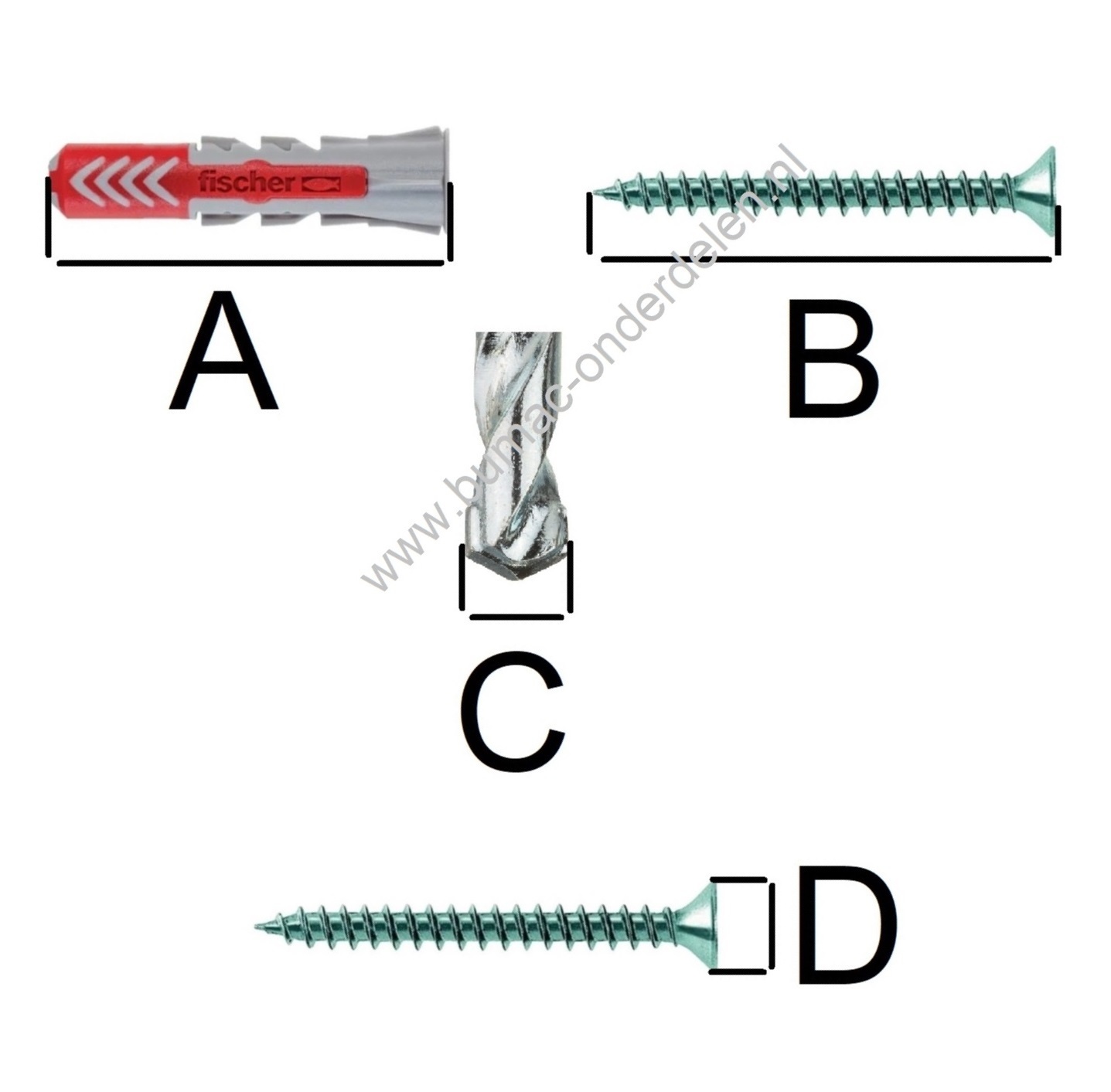 Muurplug + Metalen Schroef voor Baksteen - Beton - Gipsplaat - Kalkzandsteen - Cellenbeton - Spaanplaat - Gipsblokken - Natuursteen