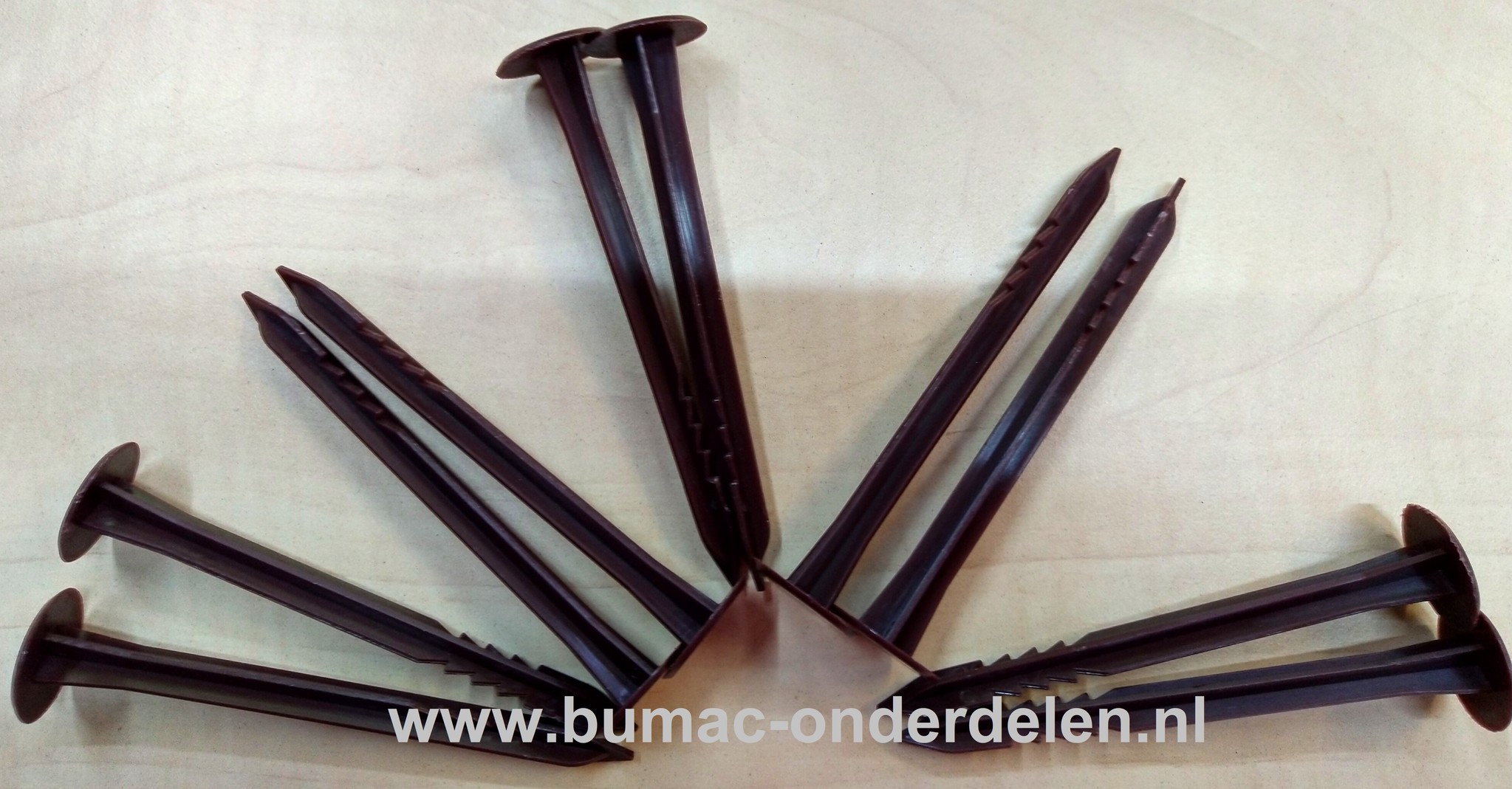 Netanker, lengte ca 10 cm, per 10 stuks, kunststof, bruin,met weerhaak voor betere grip in de bodem, grondanker, bevestigingsanker, grondharing, lengte ca 10 cm, kunststof, bruin,met weerhaak voor betere grip in de bodem De bevestigingsankers bestaan uit