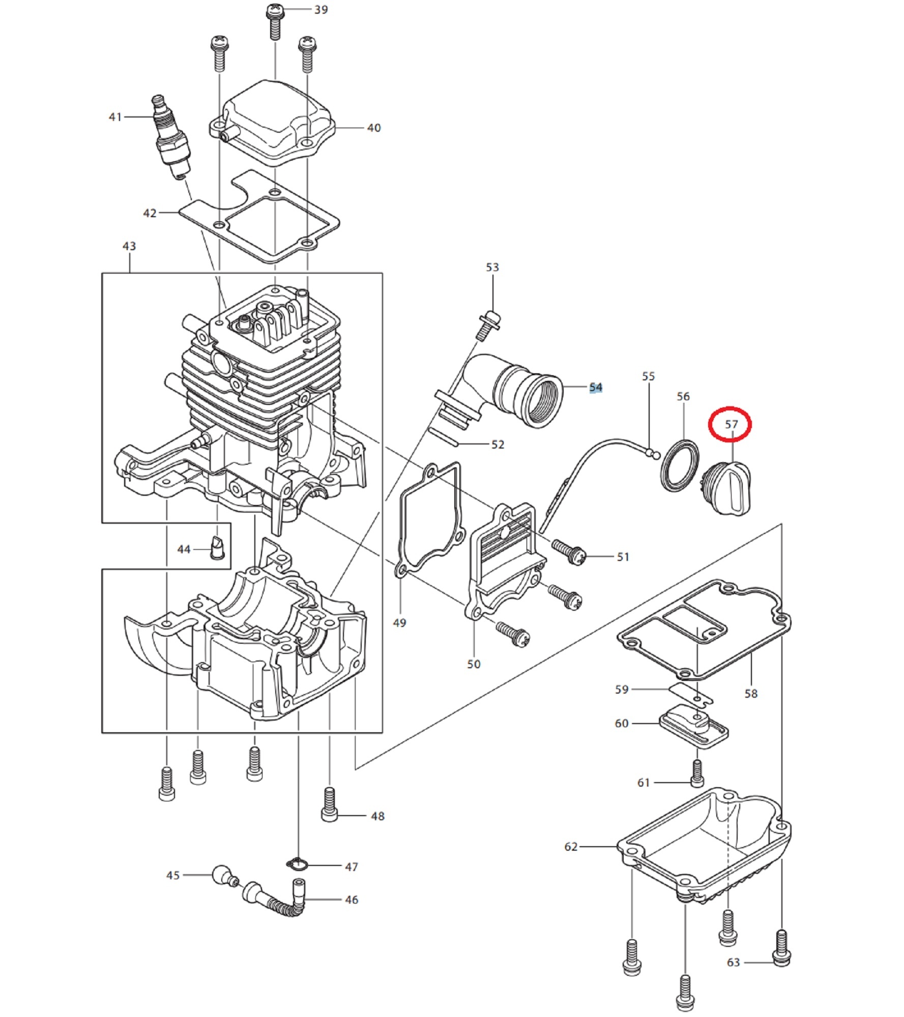 Olie dop onder andere voor Dolmar - Makita - Robin PB250.4, BHX250L, PB76604, EB7660TH, BBX7600A Bladblazers en Dolmar MS246.4A Bosmaaiers