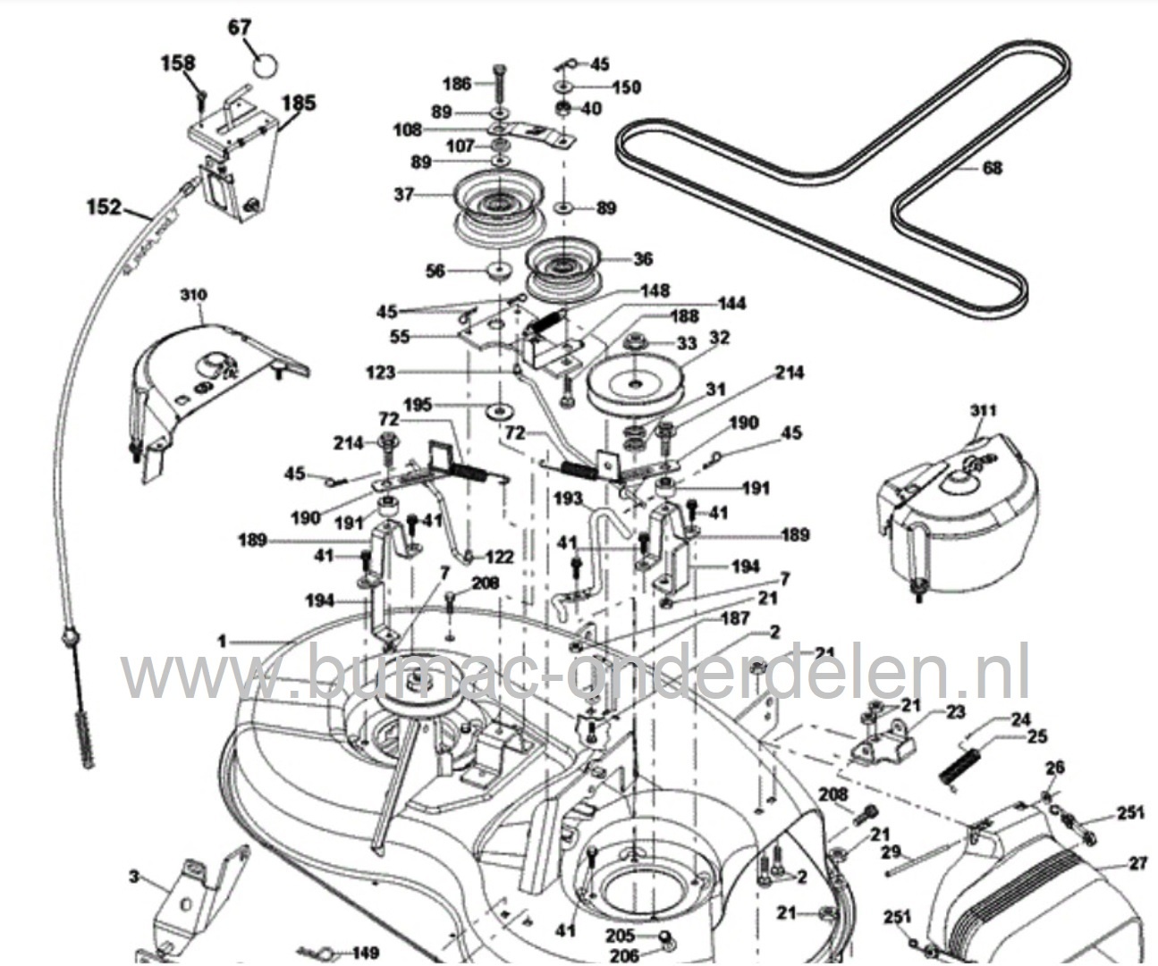Remhendel op Maaidek voor Husqvarna, Partner, Lazer, Wizard, Mcculloch, Jonsered Zitmaaier, Tuintrekker