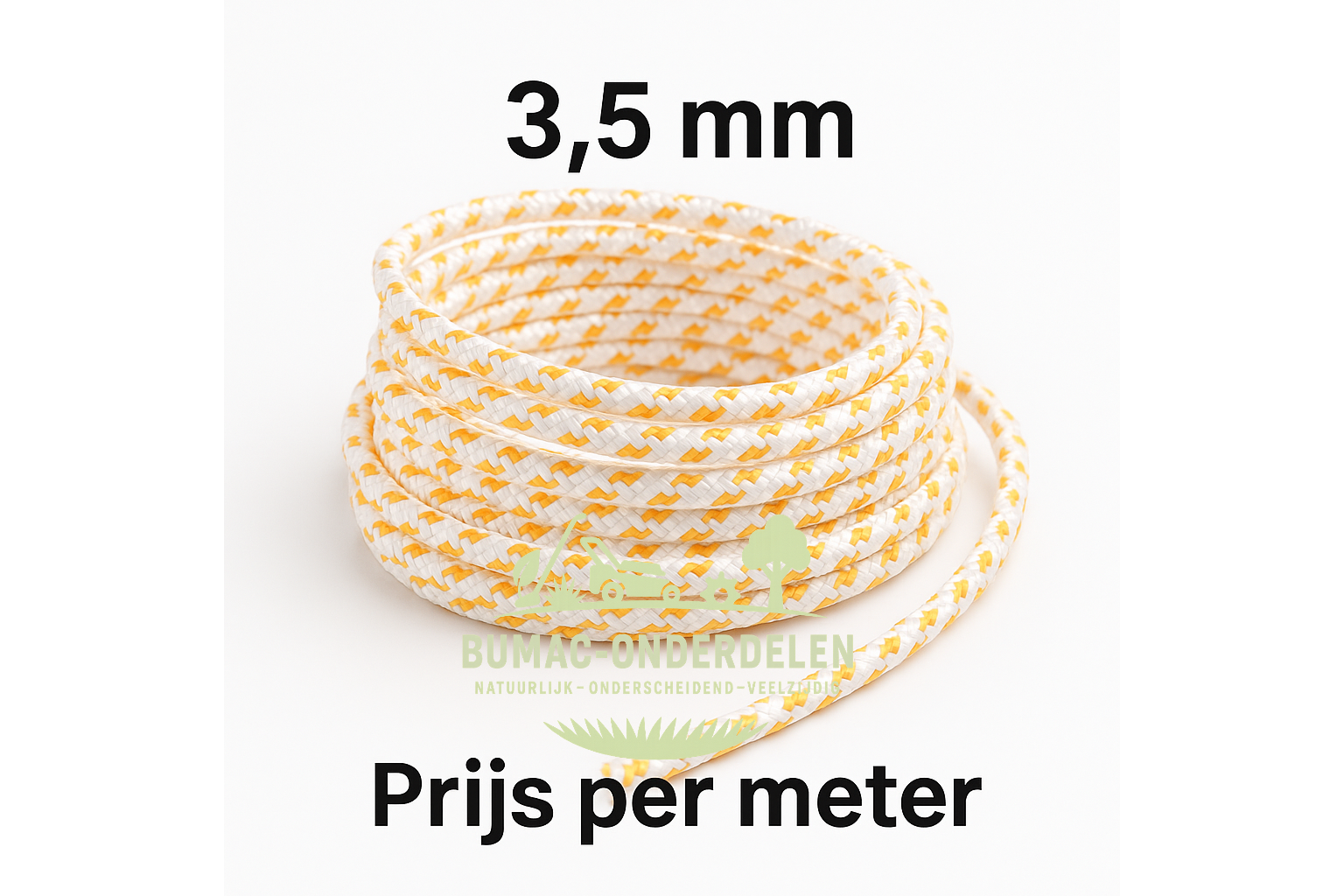 Starterkoord Versterkt 3,5 mm, Hoogwaardig Polyamide Startkoord met Binnenkern, Slijtvast, Olie- en Benzinebestendig, Per Meter Verkoop voor Repeteerstarter en Handstarter van Grasmaaier, Kettingzaag, Bosmaaier, Generator, Buitenboordmotor en Tuinmachine