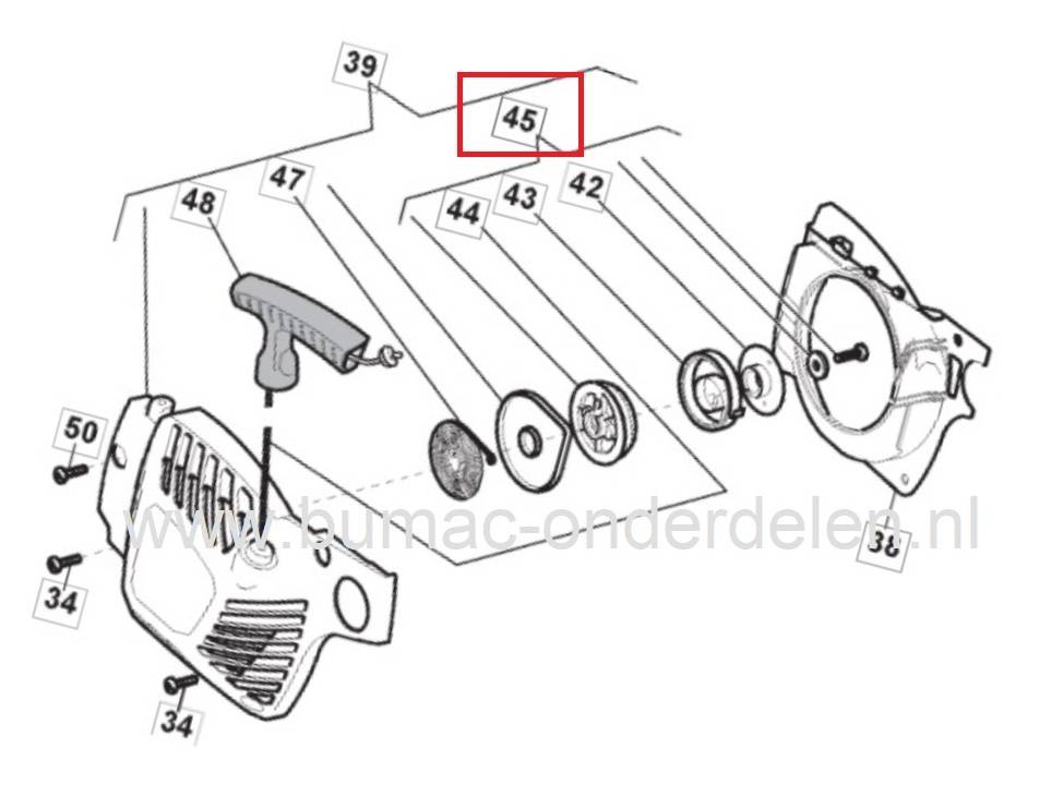 TerugHomeStartpoelie met Hulpveer voor Stiga, Alpina, Castelgarden, Mountfield Kettingzaag Starterpoelie voor onder andere A375, A405, CP40, XC238, XC240, SP372, SP375, SP375Q, SP405 en SP405Q Kettingzaag , Koordpoelie Compleet A 375, A 405, CP 40, XC 238, XC 24