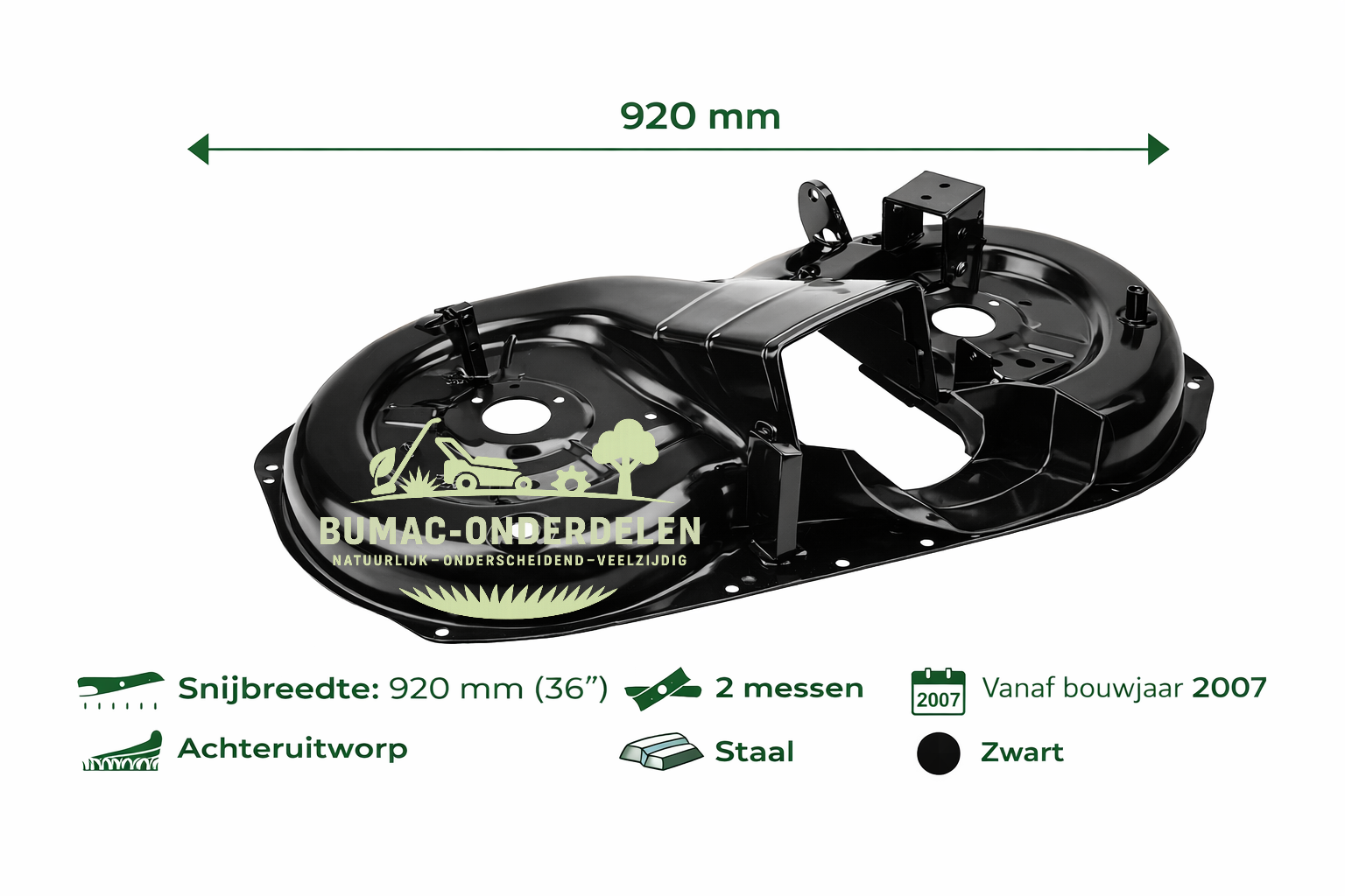 Stiga maaidekbehuizing onderdeel 920 mm (36") achteruitworp voor Stiga, Solo, Castelgarden en Alpina zitmaaiers vanaf 2007