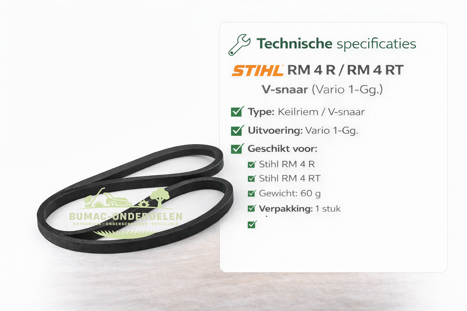 Deze V-snaar voor de Stihl RM 4 R en RM 4 RT is een betrouwbaar onderdeel voor een correcte aandrijving van uw grasmaaier met Vario-transmissie. Tijdige vervanging voorkomt slip en stilstand.