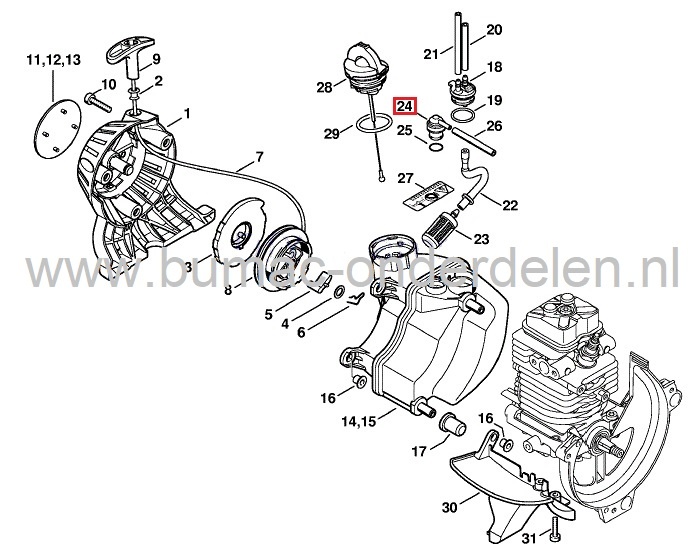 Groot assortiment onderdelen - Voor grasmaaiers, bosmaaiers, kettingzagen en meer buitenmachines