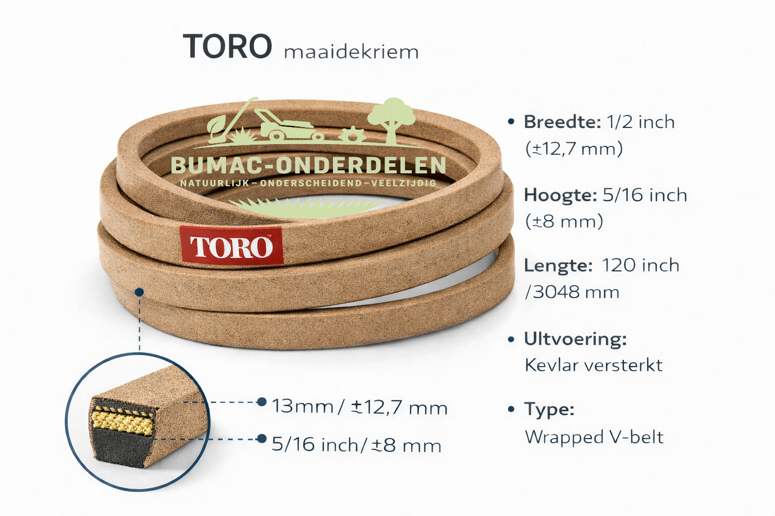 Let op: dit is geen smal XP-profiel (zoals XPA/XPB), maar een klassieke ommantelde V-snaar zoals toegepast door Toro in deze maaidekken.