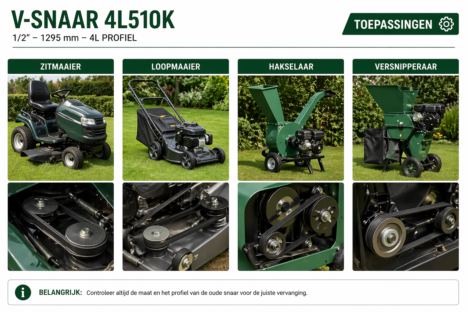 - Tuinmachines waar een 4L profiel V-snaar onderdeel wordt gebruikt