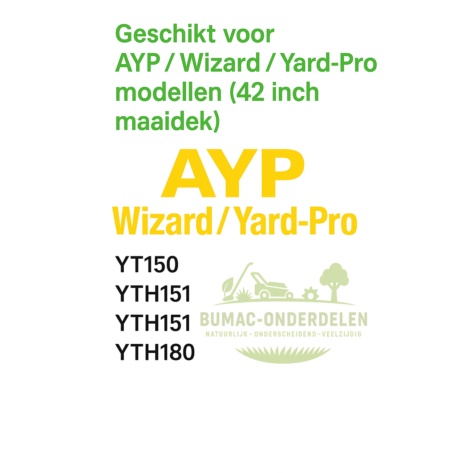 V snaar Maaidek 42 Inch voor AYP, Husqvarna, Jonsered, Partner, Wizard, Yard-Pro Zitmaaiers met dubbel geleidepoelie-systeem, geschikt voor oudere modellen CT130, CTH130, YT130, YTH150, 42” maaidek, onderdeel