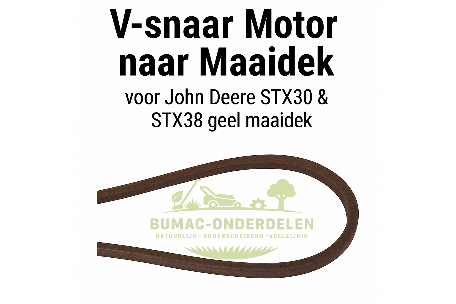 Deze Kevlar V-snaar motor naar maaidek 1/2" × 1676 mm is geschikt voor John Deere STX30 en STX38 zitmaaiers met geel maaidek. Toepasbaar op diverse John Deere modellen uit de 100-, 200-, 300-, GT- en LX-serie.