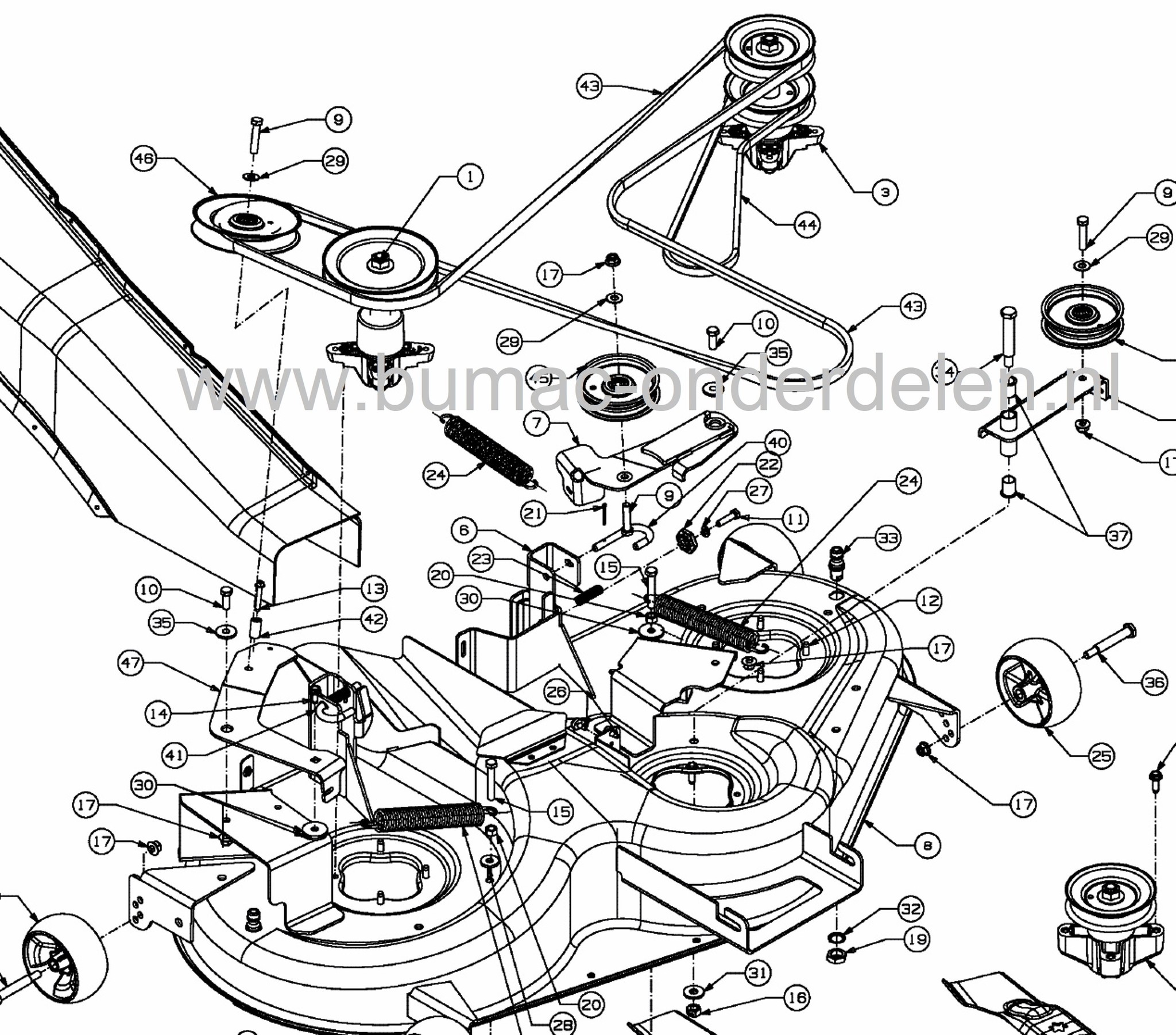 V snaar Maaidek MTD, Gutbrod, MF, Bolens, Wolf, Yard Man, Cub Cadet Serie 500 met J-Deck (48 Inch/122cm) Achteruitworp, Aandrijfriem voor Linker en Middelste Maaimes BL220/122H, GLX122RHL, Expert 122.240H, CC1023RD, CC1024RDJ, CC1024KHJ, AJ5190, HJ5200,