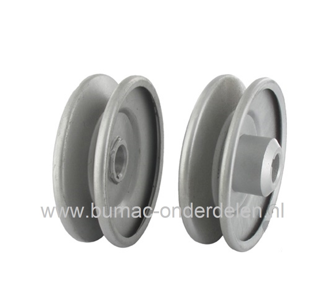 V snaar poelie met spiegroef voor Murray, Simplicity, Snapper, zitmaaier, frontmaaiers, tuinfrees, grondfrees, spanpoelie, drukpoelie, riemschijf met meshouder en spiegroef, onderdeel