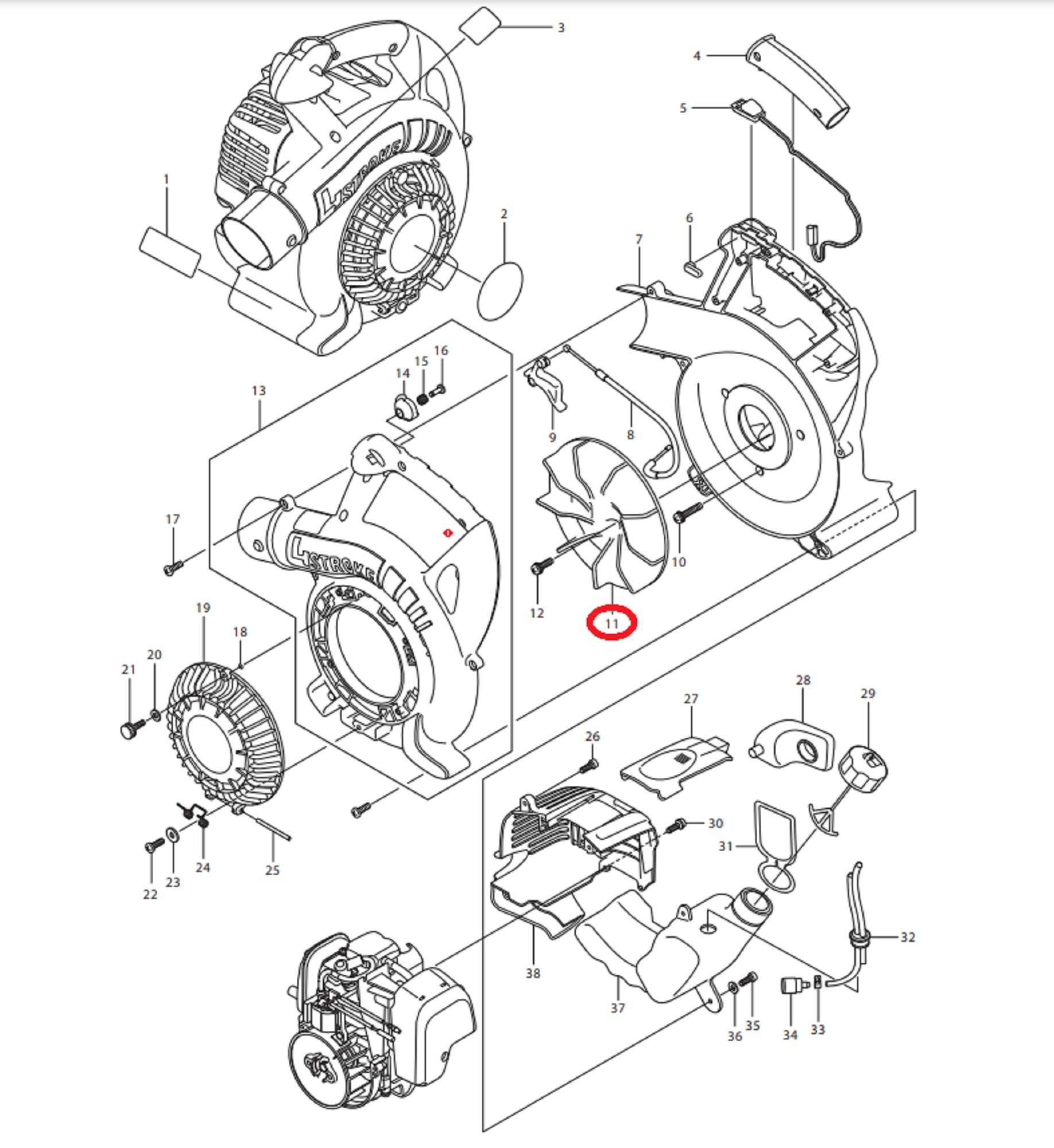 Waaier onder andere voor DOLMAR, MAKITA, ROBIN PB250.4, BHX250L Bladblazer