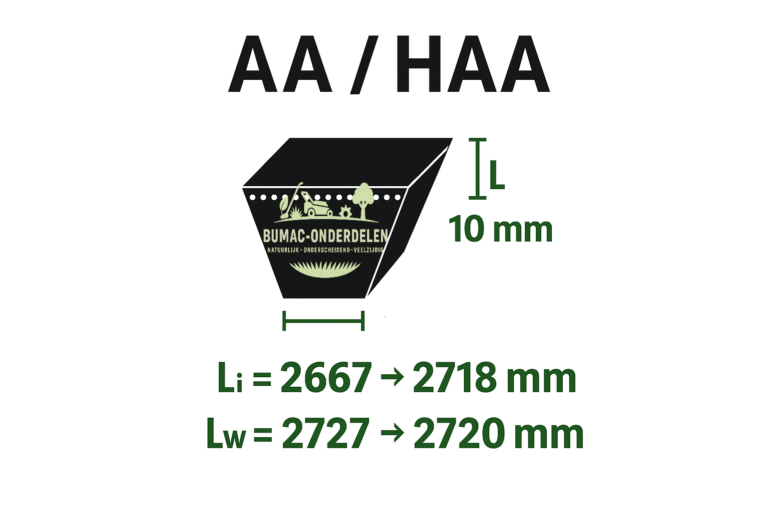 Meet uw oude riem vooraf na (breedte 12,7 mm, Li 2667 mm, La 2718 mm) en controleer de routing. Dan weet u zeker dat deze AA105 direct past.