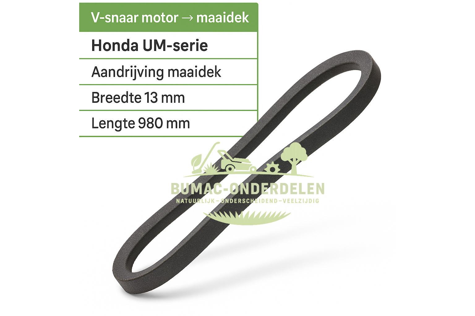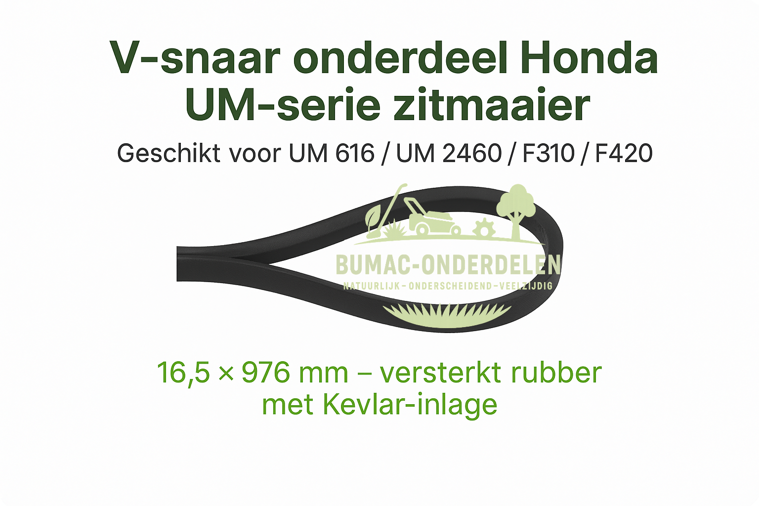 v-snaar, aandrijfriem, transmissieriem, riem zitmaaier, riem grasmaaier, Honda UM 616, UM 2460, F310, F420, F560, hydrostatische aandrijving, Honda onderdeel, Bumac-onderdelen