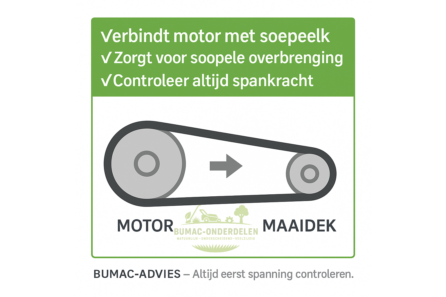 ✅ Tip: Controleer bij vervanging ook de spanner en geleiderol – een versleten onderdeel verkort de levensduur van de nieuwe riem.